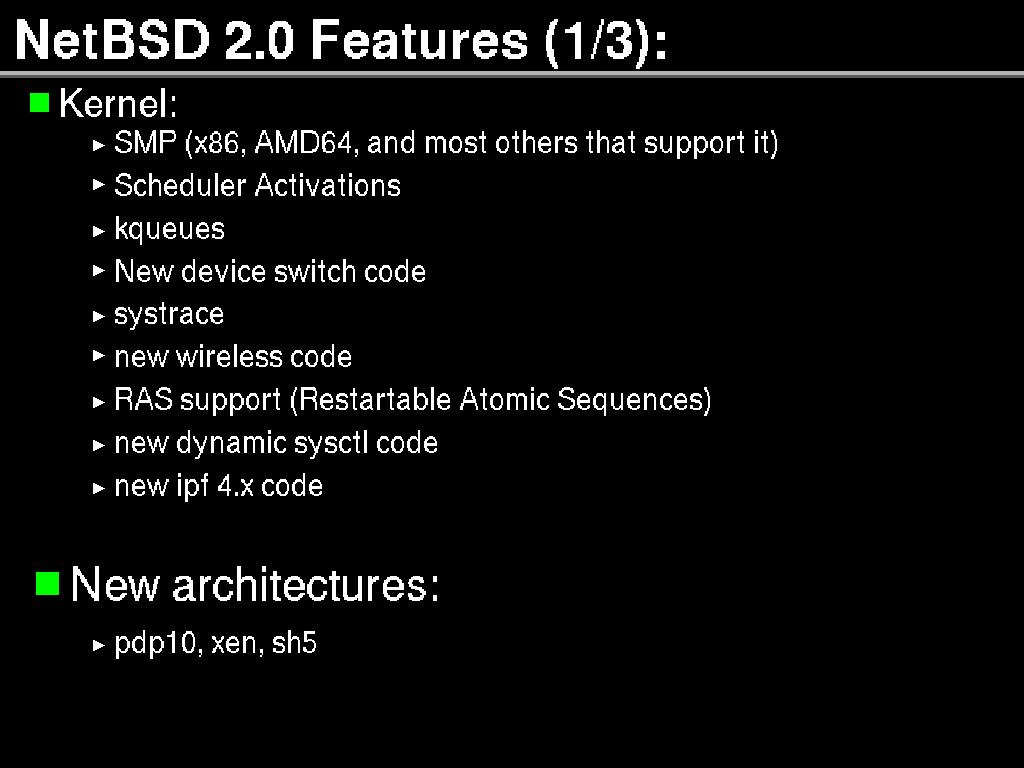 Page 10: NetBSD 2.0 Features (1/3):